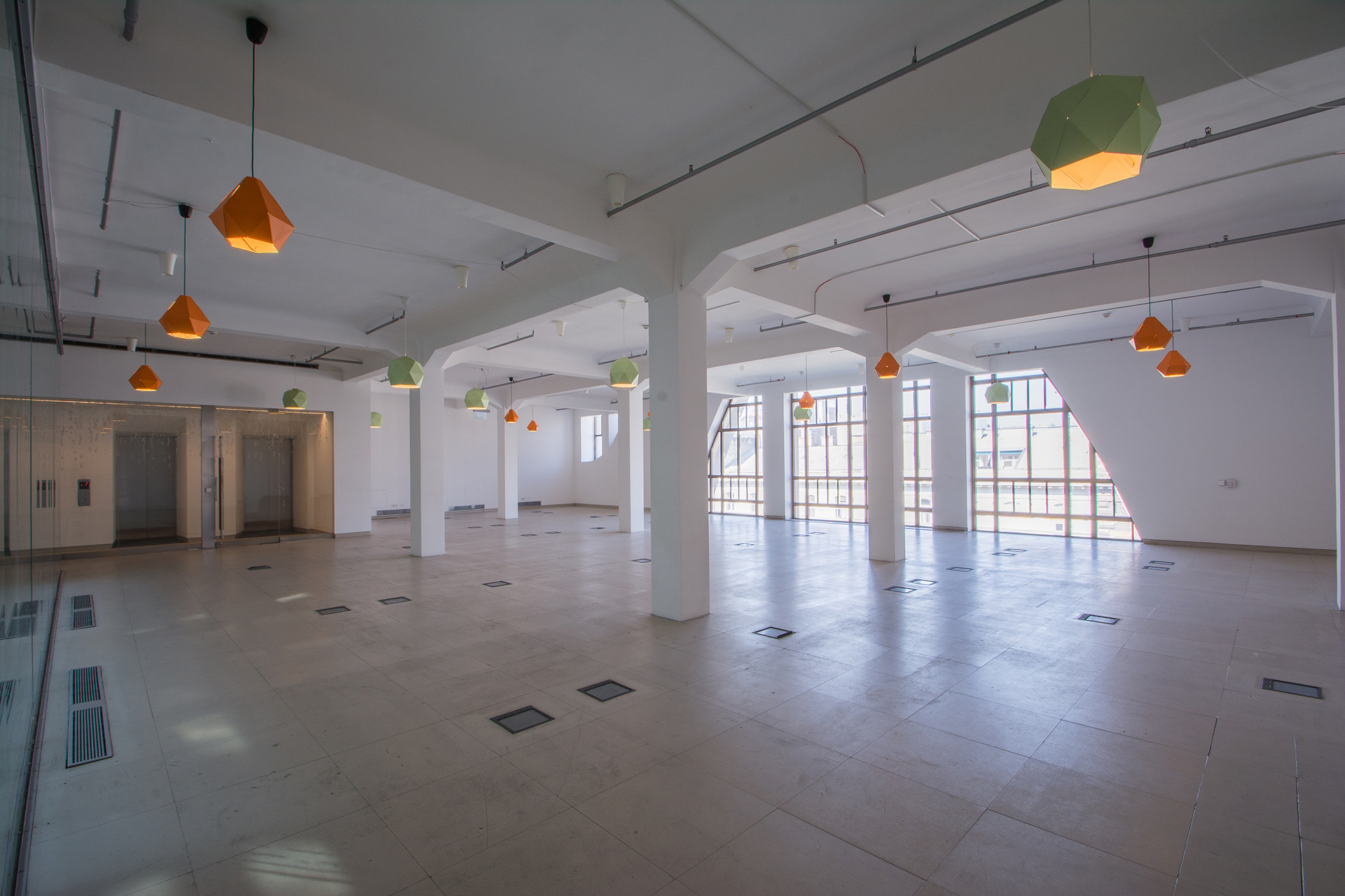 Az elegáns, világos irodák és a panorámás tetőterasz egyedi munkakörnyezetet biztosítanak.